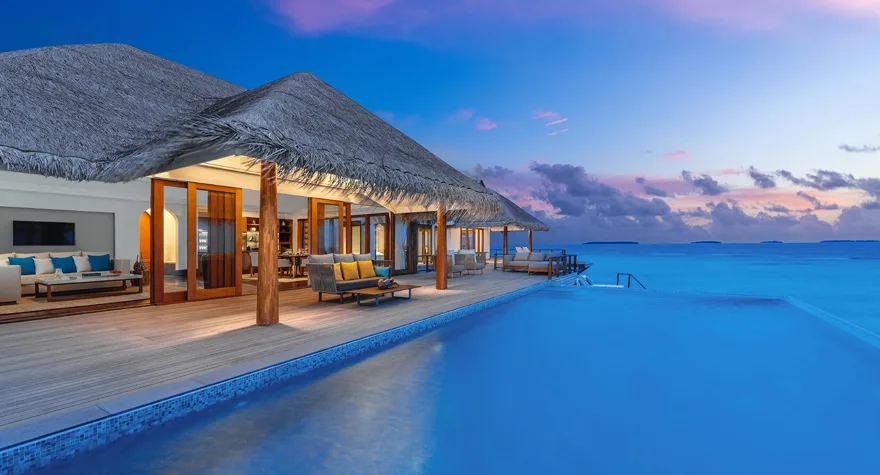 ترتبط فيلل المسبح فوق الماء في جزر المالديف بأرقى معاني الفخامة وأسلوب الحياة المائية المنشود. تمتد هذه الفيلات الجديدة كليًا فوق المياه الفيروزية الصافية للبحيرة الهادئة، حيث يجتمع الراحة المطلقة مع الرفاهية الاستثنائية. إنها بوابتكم الخاصة نحو أروع شعاب المالديف المرجانية، لتستمتعوا بتجربة إقامة تُجسّد معنى الرفاهية في أبهى صورها.
