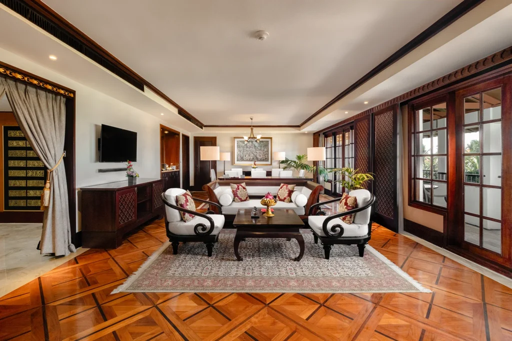 استمتع بتجربة إقامة حصرية في أيوديا بالاس التي توفّر مساحة أنيقة تبلغ 56 مترًا مربعًا، مثالية لقضاء عطلة خاصة راقية أو لاستضافة اجتماعات ومناسبات عمل في قلب بالي. يتمتع ضيوف أيوديا بالاس بإمكانية الدخول الحصري إلى صالة أيوديا بالاس، حيث يمكنهم الاستفادة من مزايا مميّزة تشمل سلة فواكه طازجة يومية مجانًا، ووجبات خفيفة مختارة، إضافة إلى شاي بعد الظهر وكوكتيلات مسائية في أجواء فاخرة تعكس أعلى مستويات الضيافة.