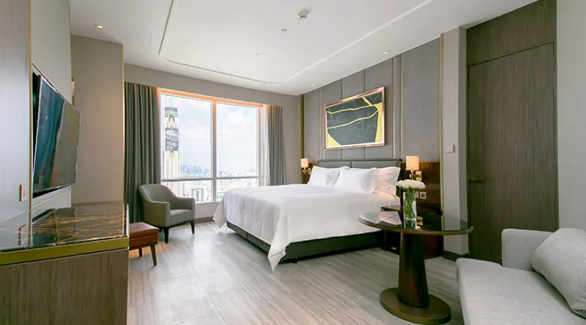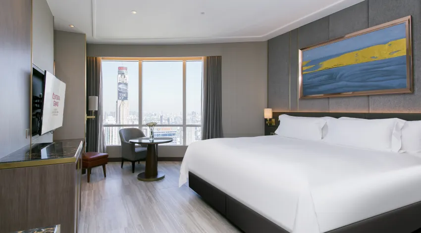 تُعد غرفة سوبيريور قاعدة دافئة وترحيبية، وتوفر إطلالات خلابة على أفق بانكوك. تبلغ مساحة الغرفة 32 مترًا مربعًا وتضم سريرًا فخمًا بحجم كينغ، ومكتب عمل مريح، وحمامًا واسعًا مع دش محاط بالزجاج. هنا، يمكنك التواصل مع العمل والمدينة بكل سهولة.