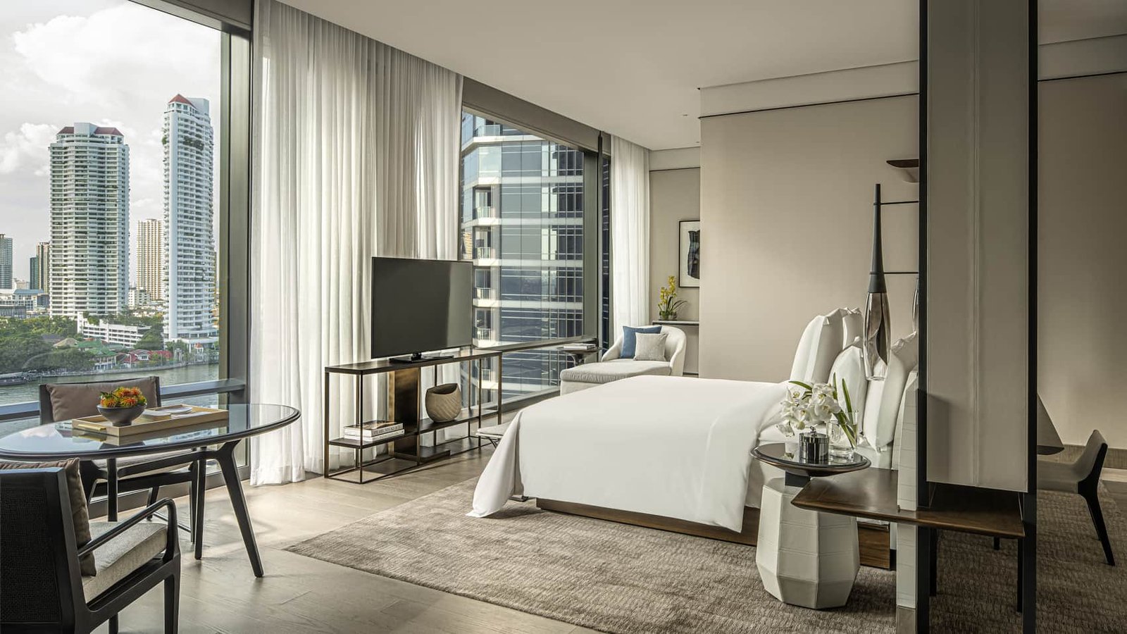 توفر هذه الأجنحة ذات غرفة النوم الواحدة أفضل ما في العالمين، مع إطلالات بانورامية على نهر تشاو فرايا وإطلالات هادئة على الفناء الداخلي. استرخِ في غرفة المعيشة الواسعة بينما تتلألأ أضواء النهر مع حلول الغسق، لتجربة إقامة تجمع بين الراحة وروعة المشهد.