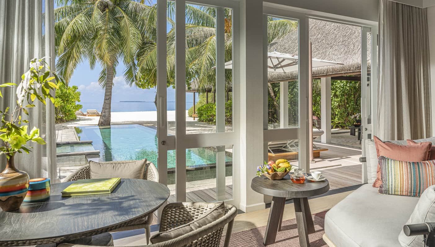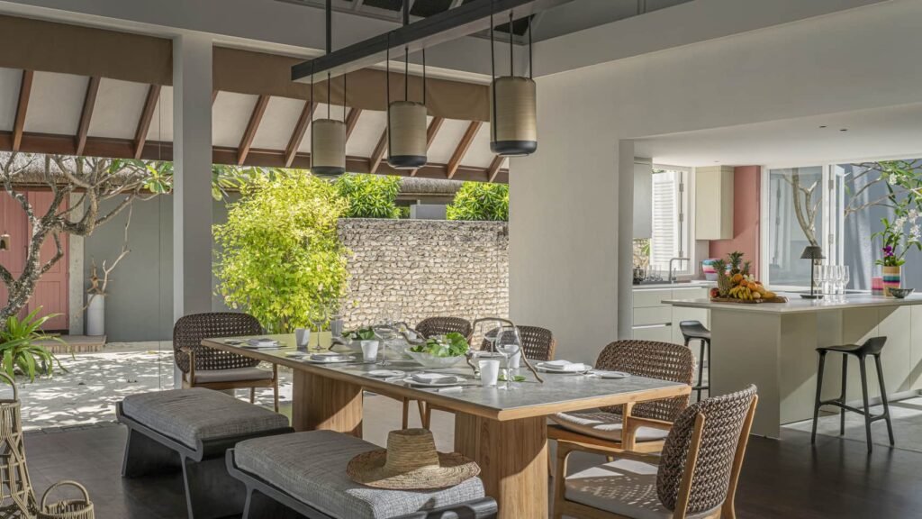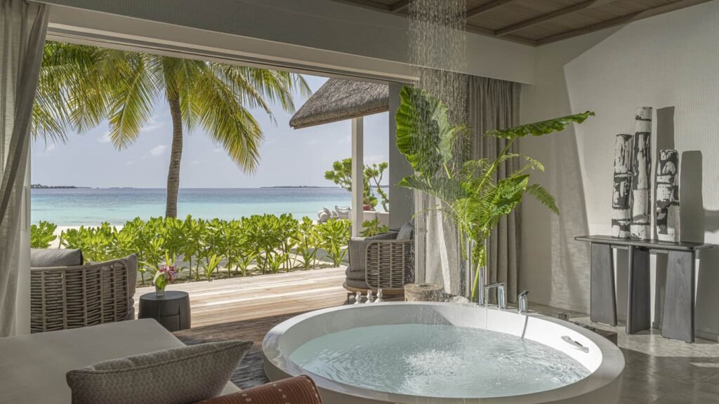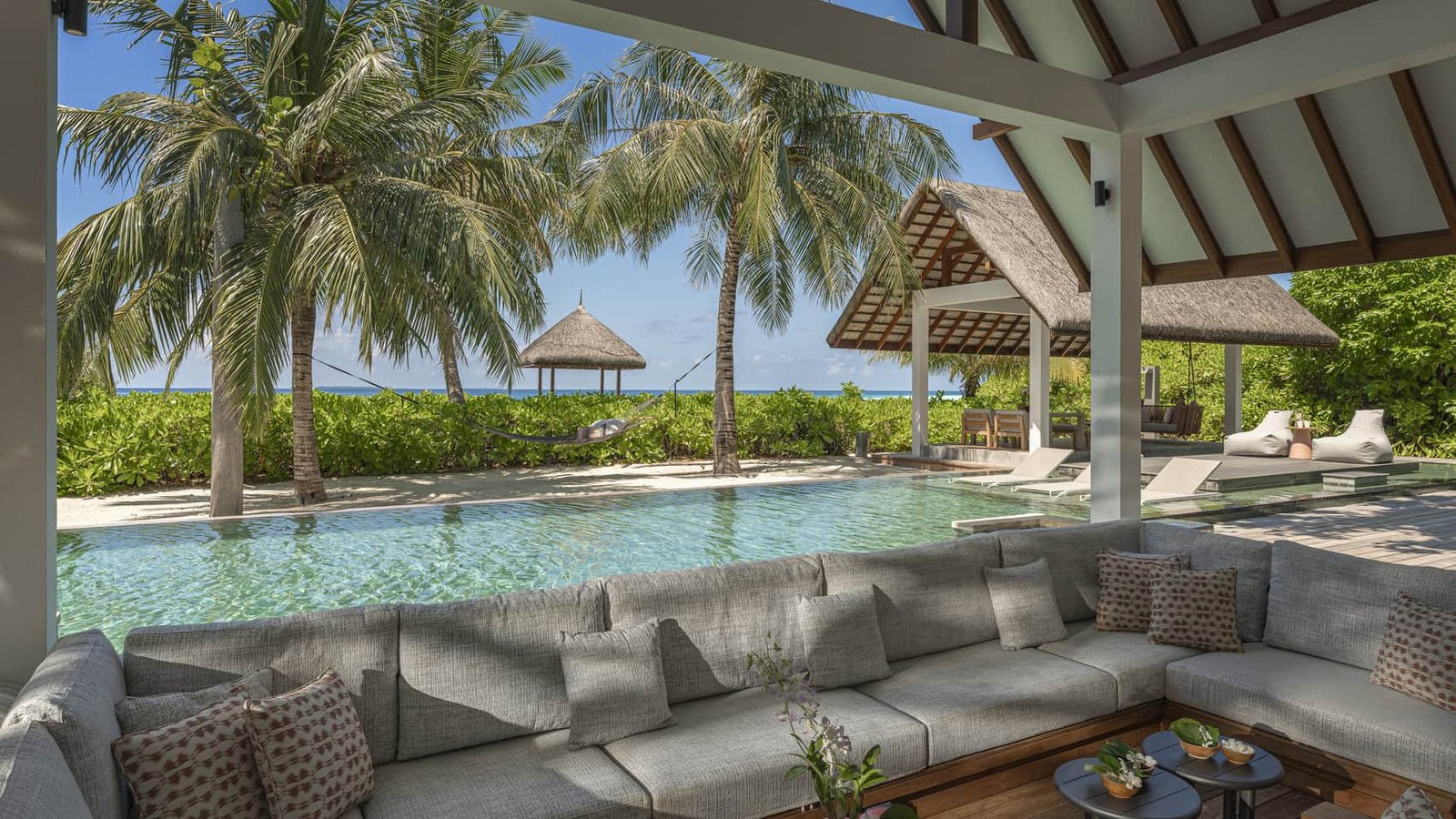 امشِ من الشاطئ وعبر بوابة تركوازية لتصل إلى فيلتك المطلة على الشاطئ، حيث يحيط بالمسبح الخاص طاولة استرخاء مبطنة، وجناح معيشة وطعام في الهواء الطلق، وغرفة نوم على طراز الجزيرة محاطة بالنباتات الاستوائية.