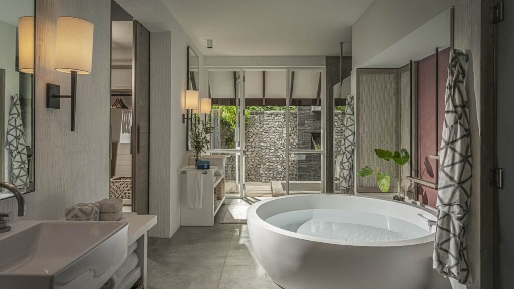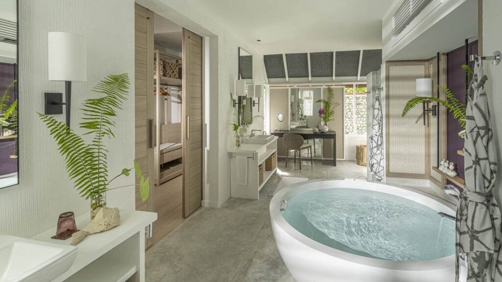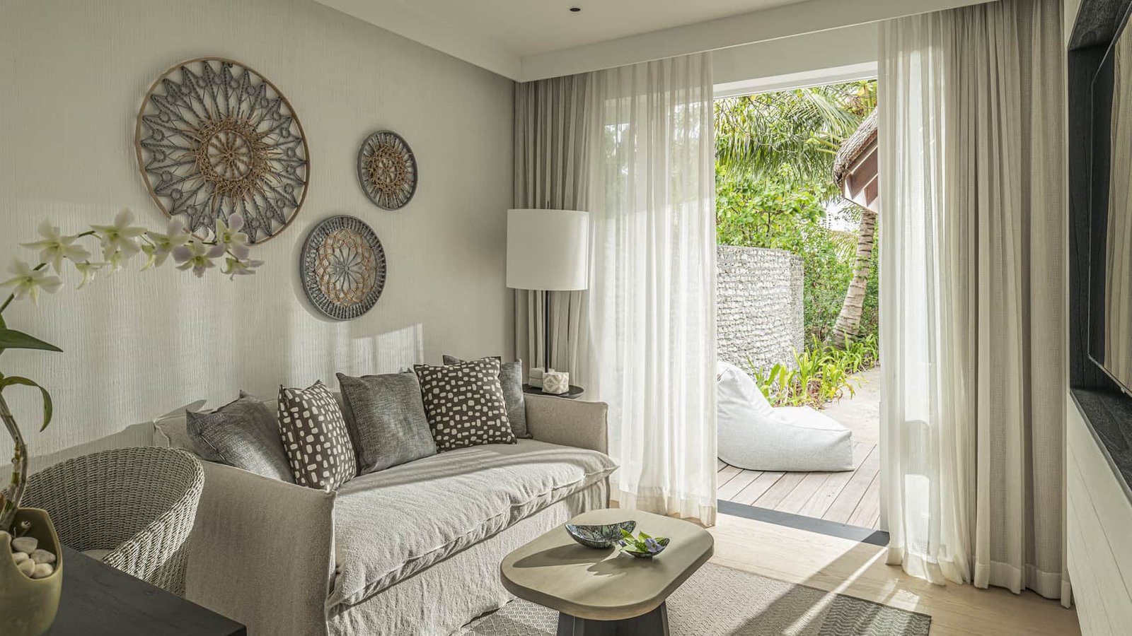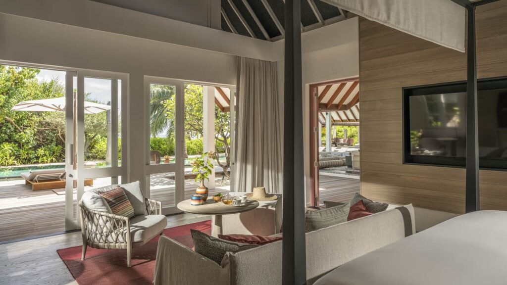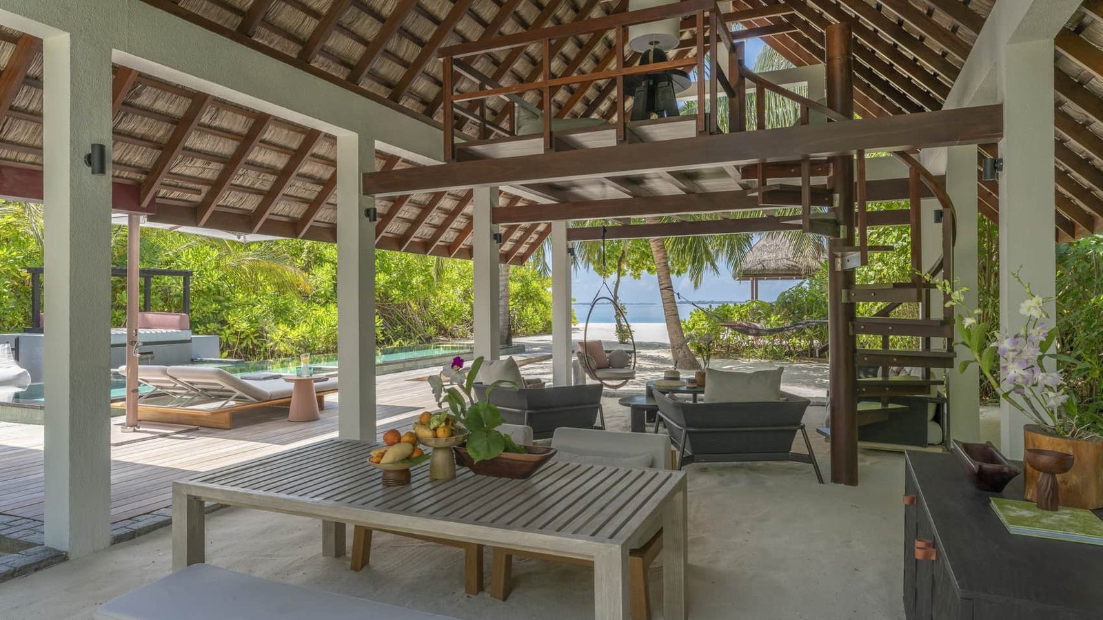 امشِ من الشاطئ وعبر بوابة تركوازية لتصل إلى فيلتك المطلة على الشاطئ، حيث يحيط بالمسبح الخاص طاولة استرخاء مبطنة، وجناح معيشة وطعام في الهواء الطلق، وغرفة نوم على طراز الجزيرة محاطة بالنباتات الاستوائية.