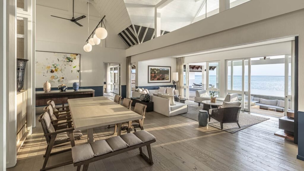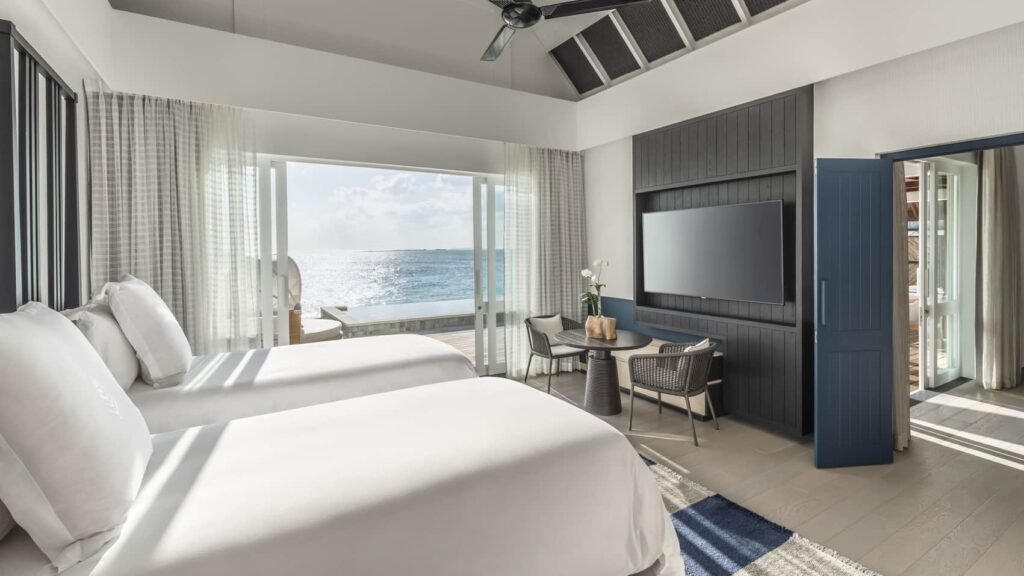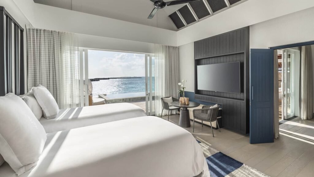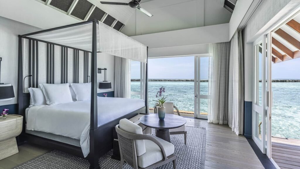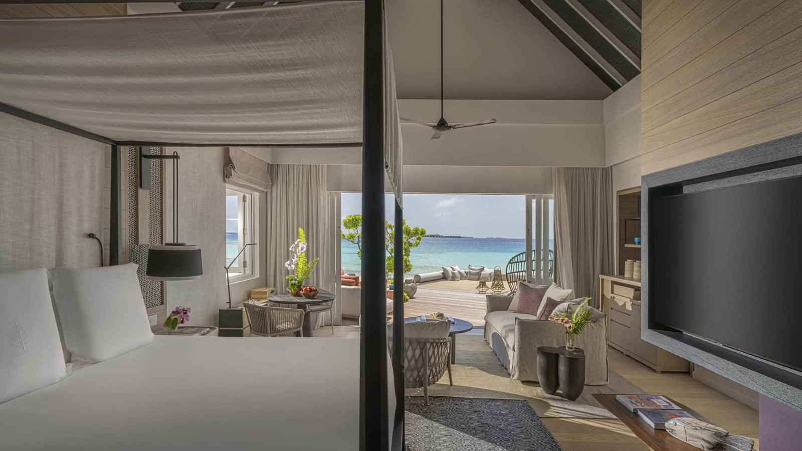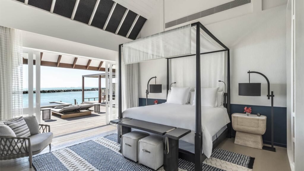 أرقى خيارات الإقامة فوق الماء، حيث يجسد هذا الجناح الفاخر تطور أسلوب العيش فوق المحيط. يضم تراسات خارجية واسعة مع غرفة معيشة غائرة وكراسي استرخاء نصف مغمورة بالماء بين أشجار النخيل، فيما تضفي غرفة الاستحمام الرئيسية ذات التصميم الدائري لمسة من الفخامة التي تتكامل مع تفاصيل داخلية استثنائية.