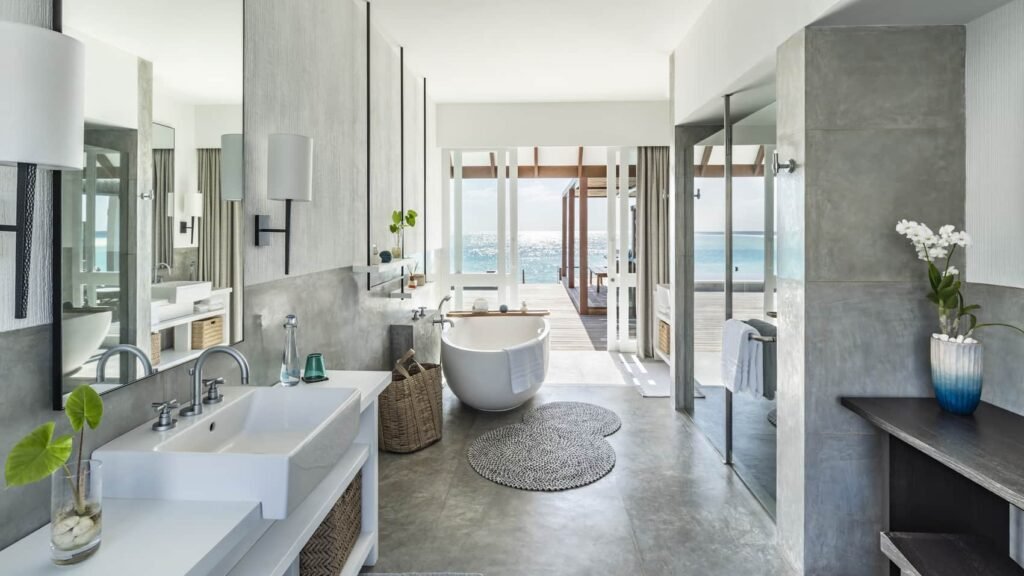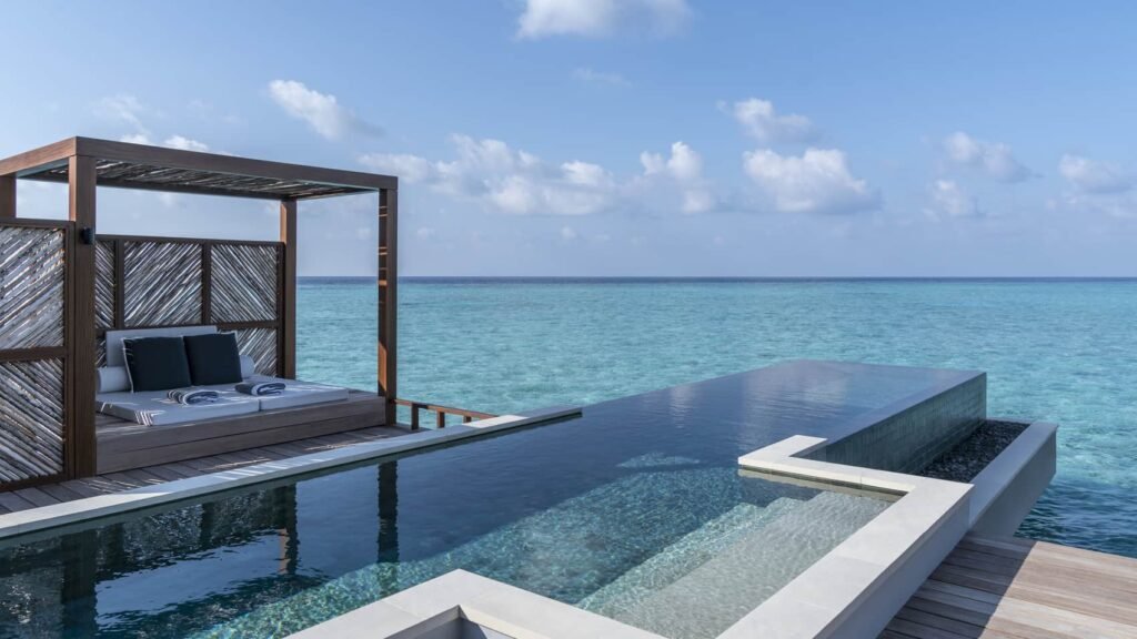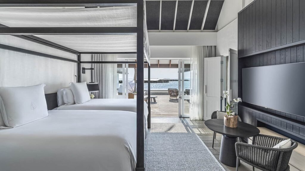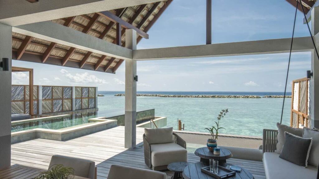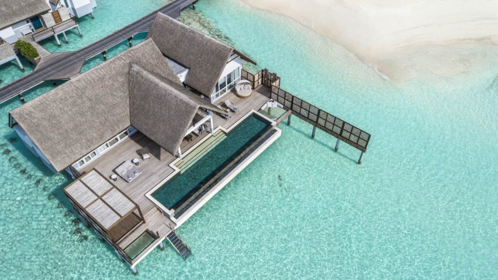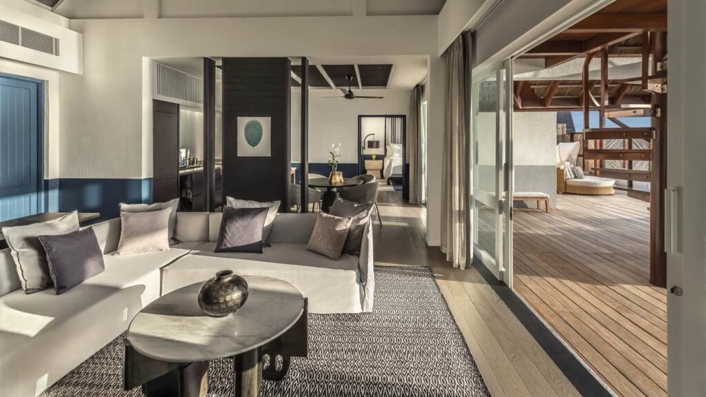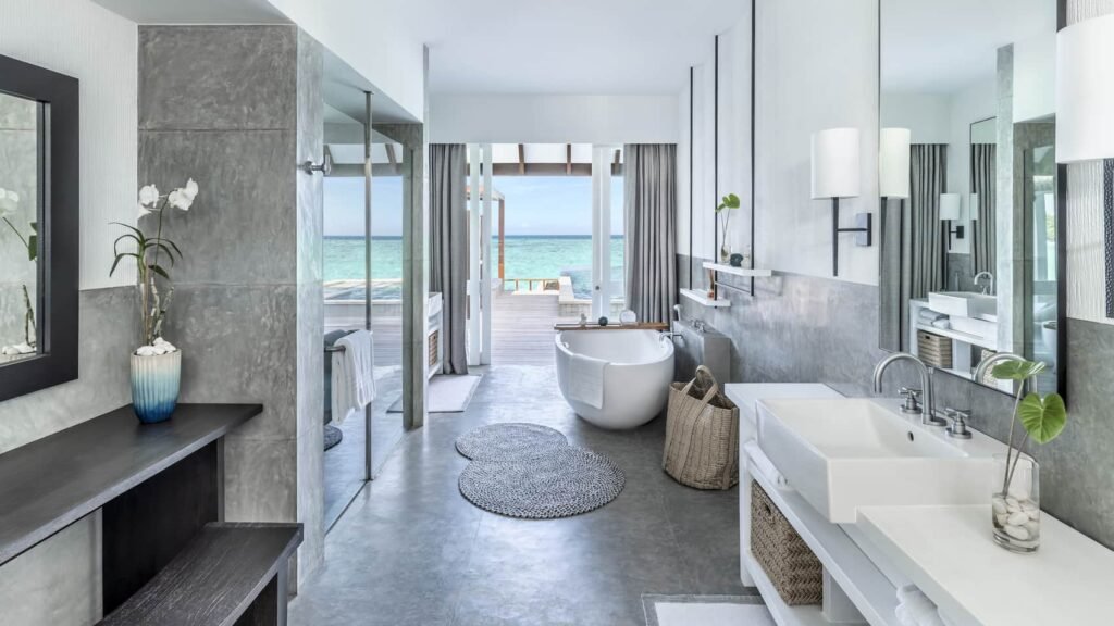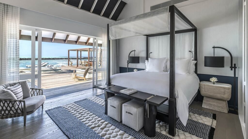 أرقى خيارات الإقامة فوق الماء، حيث يجسد هذا الجناح الفاخر تطور أسلوب العيش فوق المحيط. يضم تراسات خارجية واسعة مع غرفة معيشة غائرة وكراسي استرخاء نصف مغمورة بالماء بين أشجار النخيل، فيما تضفي غرفة الاستحمام الرئيسية ذات التصميم الدائري لمسة من الفخامة التي تتكامل مع تفاصيل داخلية استثنائية.