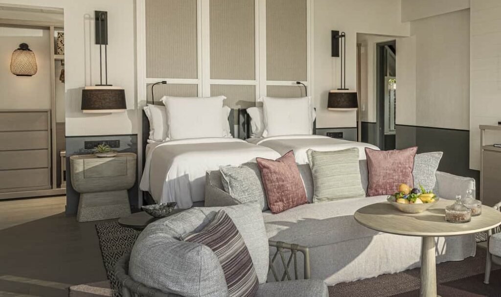 خيار مثالي للعائلات مع أطفال أكبر سناً، حيث يوفر هذا البنغل المطل على البحر غرفتي نوم مستقلتين متصلتين بممر يؤدي إلى مساحة معيشة وطعام خارجية فسيحة، بالإضافة إلى مسبح خاص يضفي أجواء من الخصوصية والراحة.