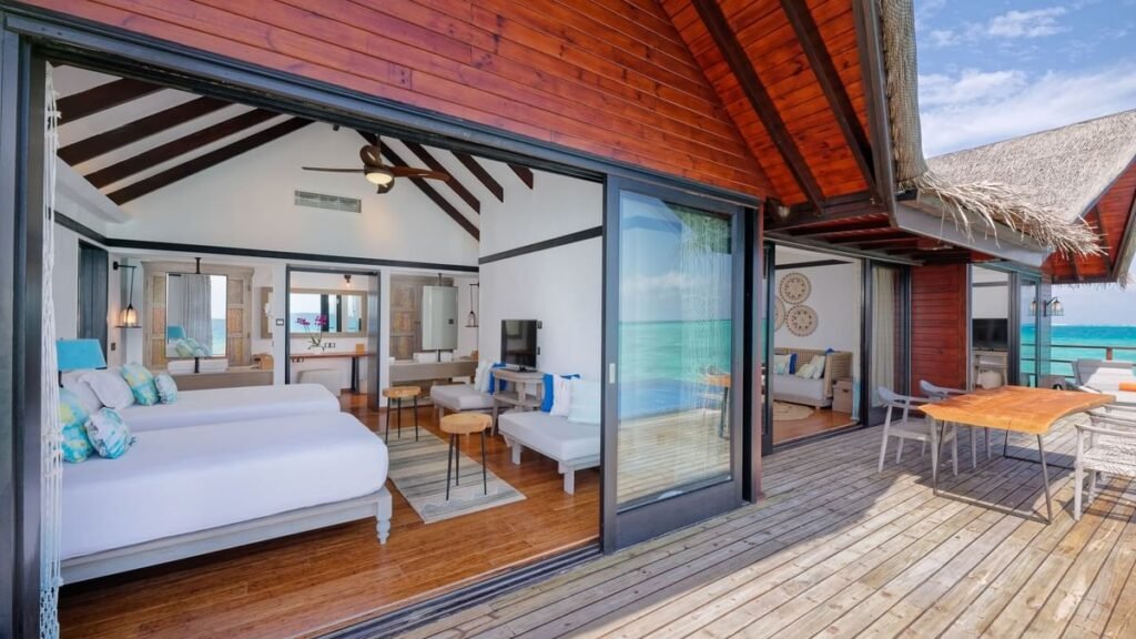 استمتع بأقصى درجات الخصوصية والراحة في هذه الفيلا المائية الفسيحة في المالديف. تمتع بإطلالات هادئة على المحيط، استرخِ في مسبحك الخاص، واقفز مباشرة إلى المياه الزرقاء العميقة لتختبر الحياة البحرية المالديفية.