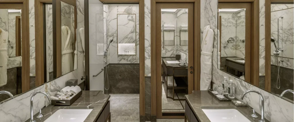 يجمع جناح Junior Suite Deluxe بين أجواء الراحة والفخامة الأرستقراطية، حيث تتناغم فيه الأثاث الكلاسيكي والأقمشة الفاخرة والعناصر الزخرفية العتيقة بانسجام تام.