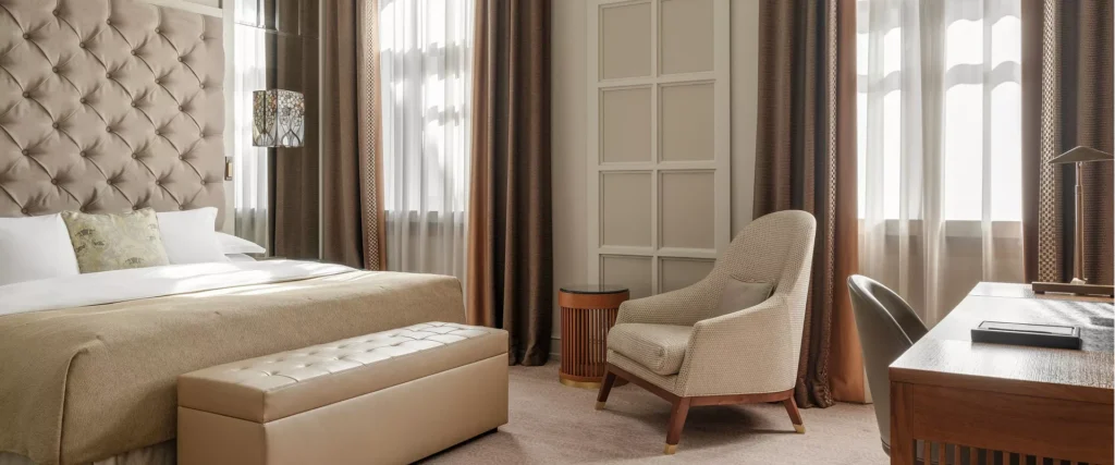 تجسد غرفة سوبيريور أسلوبًا راقيًا وراحة فائقة، مما يجعلها مثالية لكل من رحلات العمل والإقامة الترفيهية في قلب العاصمة. يتبع التصميم الداخلي جماليات الفن الزخرفي الكلاسيكي (Art Deco)، مع عناصر نسيجية راقية، ألواح زخرفية، ومصابيح أنيقة.