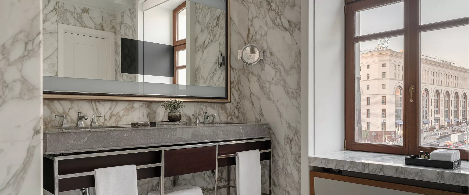تمزج غرفة Signature Grand Superior بين الأسلوب العصري والأجواء الفاخرة لموسكو، حيث تضفي الظلال الفاتحة والمواد الفاخرة إحساسًا بالرحابة والراحة.