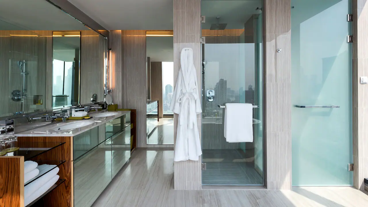 مصممة بلمسات عصرية مستوحاة من أزهى العصور في تاريخ تايلاند، تتميز كل غرفة بتصميم شبه مفتوح يشمل خزانة ملابس واسعة قابلة للمشي، منطقة عمل رحبة، وتلفزيونًا بقياس 55 بوصة.