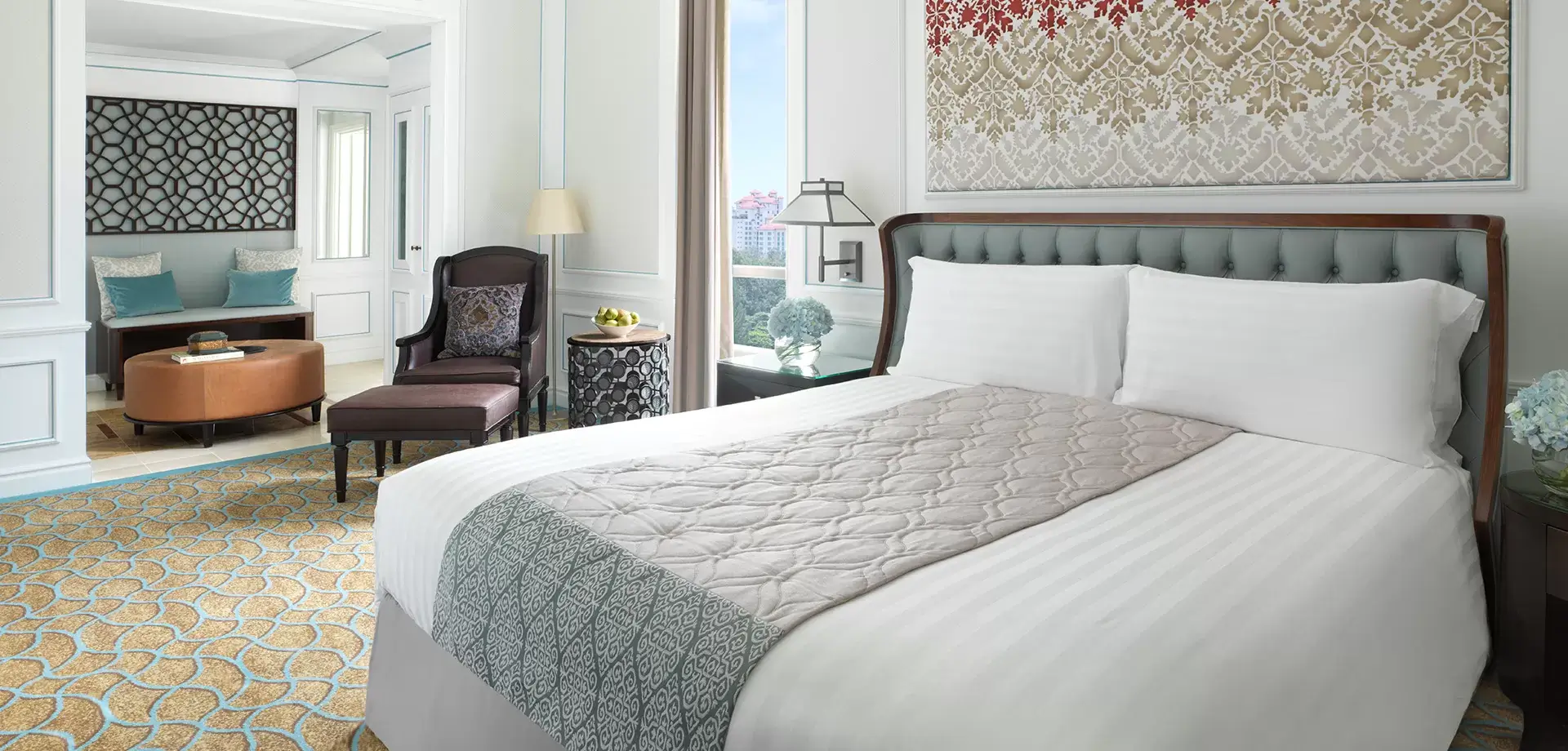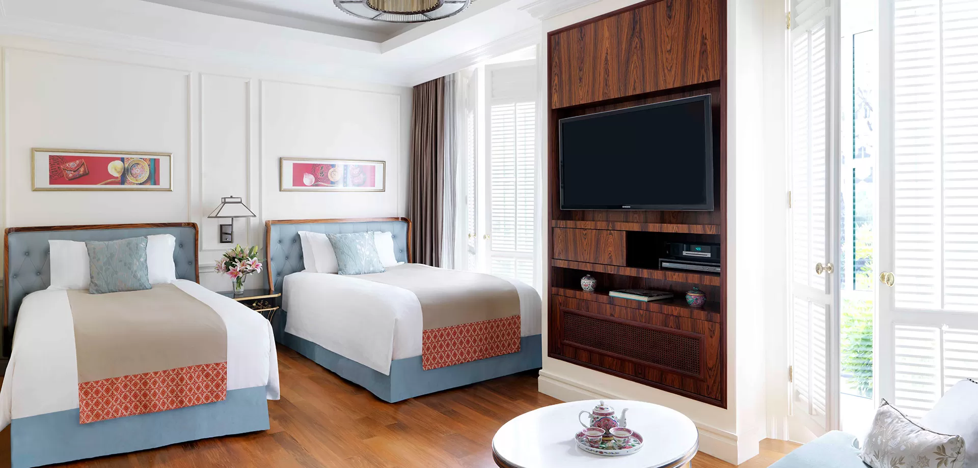 تجمع الغرف الكلاسيكية بين الأناقة السكنية والراحة الفاخرة، حيث تتميز بفرشٍ وثير ولمساتٍ مصممة بعناية لتمنح الضيوف أجواء دافئة ومريحة. ويُضفي الضوء الطبيعي المتدفق إلى الغرفة إحساسًا بالرحابة والسكينة، مع لوحة ألوان متناغمة وتجهيزات راقية تشمل جدرانًا مكسوة بالحرير وديكورًا داخليًا كلاسيكيًا يستلهم عناصر من ثقافة البيراناكان في سنغافورة.