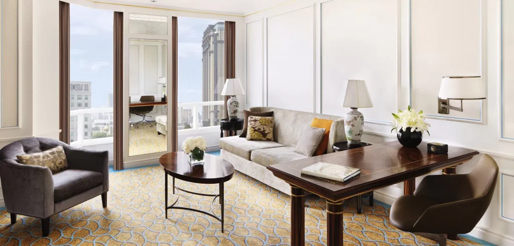 يعد الجناح الرئاسي من أكبر أجنحة الرئاسة في سنغافورة، ويتميز بأسقفه العالية وإطلالاته الرائعة على المدينة من خلال نوافذه الممتدة من الأرض إلى السقف.