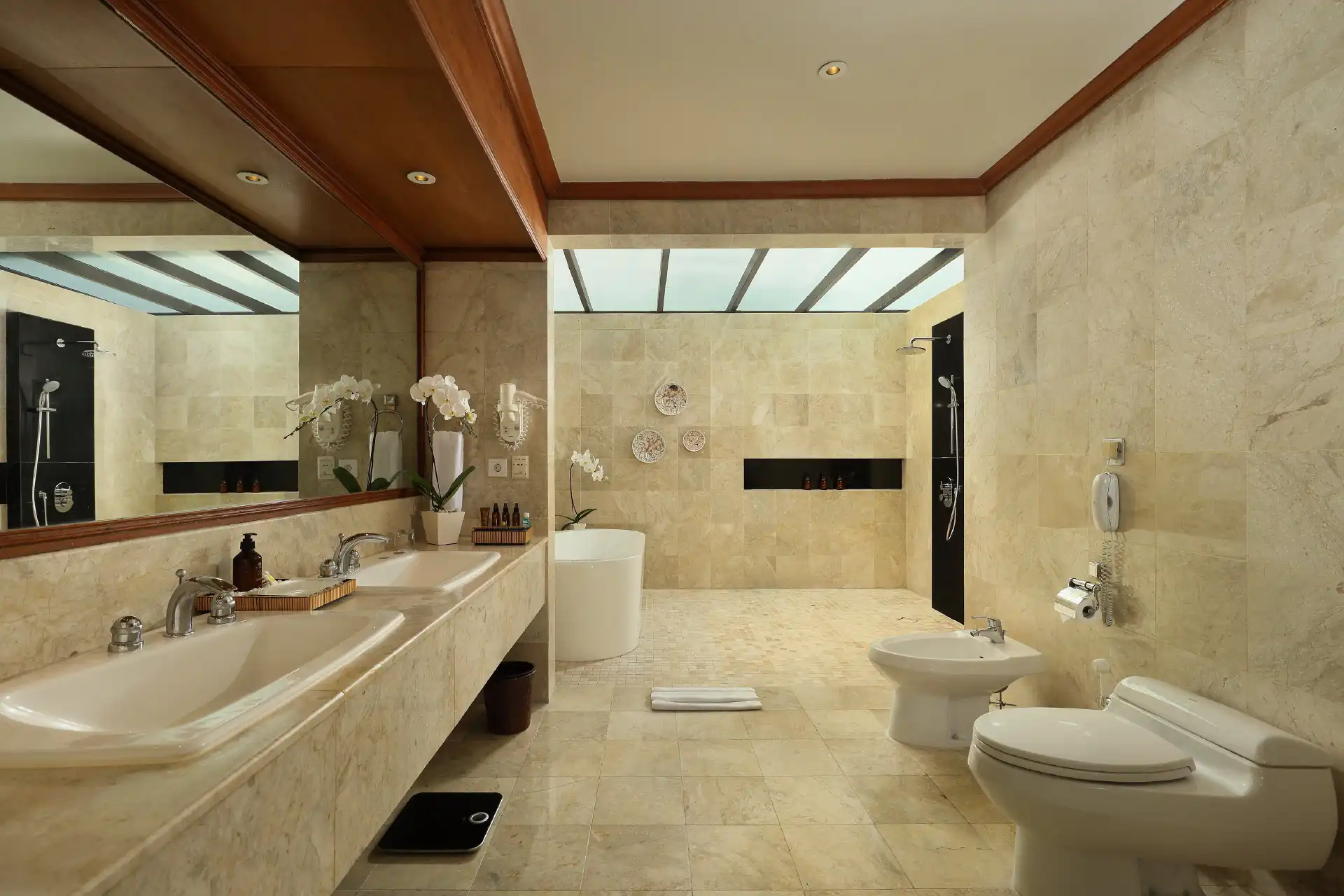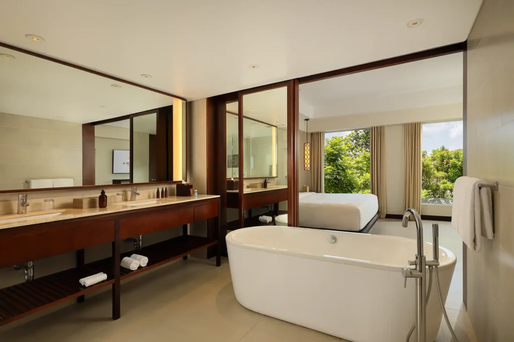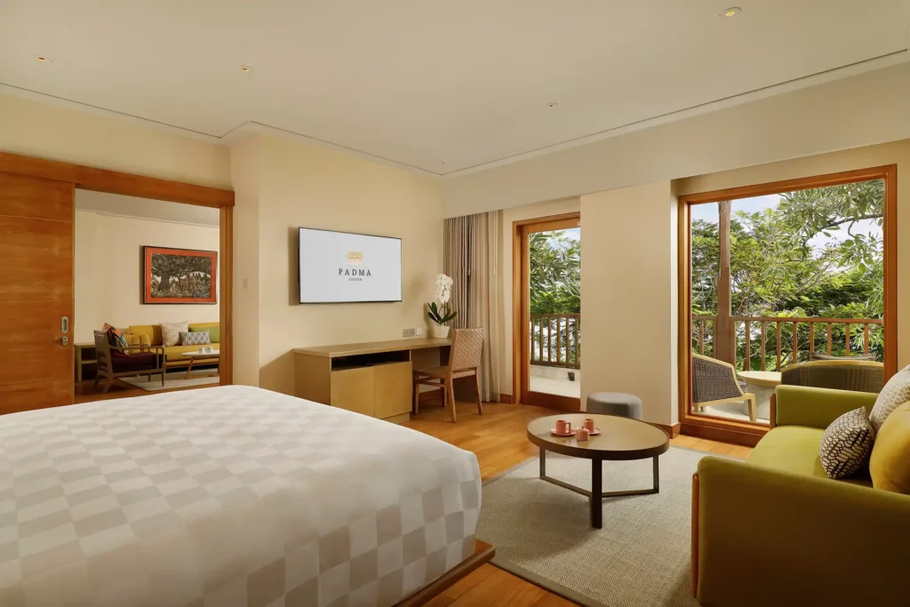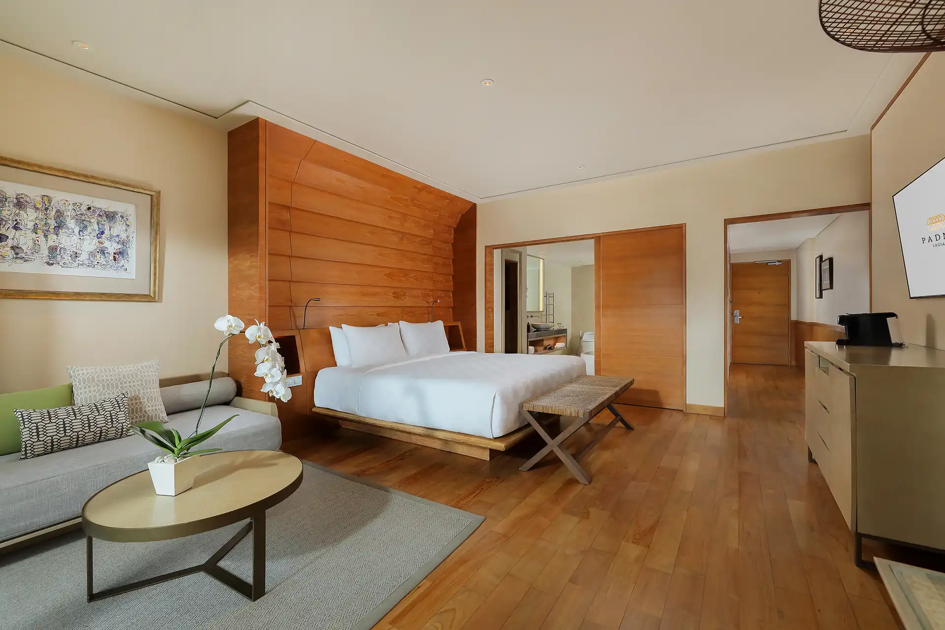 يقع جناح جونيور في موقع مميّز داخل الحدائق الغنية بالأعمال الفنية والعناصر المائية، ويشمل مزايا حصرية لصالة النادي (Club Lounge) ليمنح الضيوف تجربة إقامة راقية بكل تفاصيلها. يجمع الجناح بين الطابع الباليني التقليدي واللمسات العصرية بأسلوب أنيق يخلق إحساسًا بالراحة وكأنك في منزلك الثاني. يتميّز الجناح بتجهيزات مطوّرة تشمل آلة إسبريسو داخل الجناح، وحمّام فاخر مستوحى من أجواء السبا يضم دشًا منفصلًا وحوض استحمام، إضافة إلى منطقة معيشة أنيقة مع مساحة طعام وأريكة مريحة. ويتوفر للجناح شرفة أو تراس خاص يطل على الحدائق الهادئة، ليقدّم تجربة إقامة متكاملة تعبّر عن جوهر الأناقة البالينية المعاصرة.