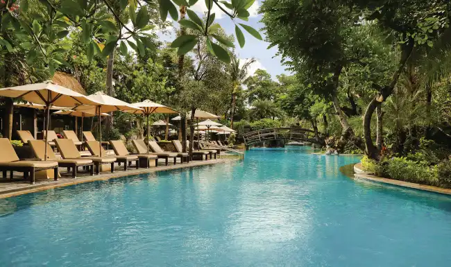 يقع منتجع بادما ليجيان على مساحة 9.6 هكتار من الحدائق المُنسّقة بعناية، والمليئة بالخضرة الاستوائية الوارفة، والمعالم المائية، والمسابح، والأعمال الفنية العامة المذهلة. ويُعد المنتجع وجهة فاخرة من فئة الخمس نجوم، يتميز بأجواء دافئة وترحيبية، ومنغمس في التراث الغني والفنون والثقافة البالينية.