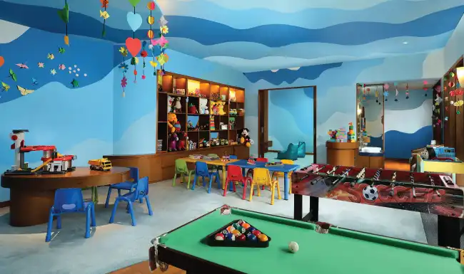 تقع الغرفة العائلية في الطابق الأرضي حول مسبح العائلات الكبير المزوّد بثلاثة منزلقات مائية، وسط حدائق استوائية غنّاء، وتوفّر إقامة عصرية رحبة تلبي احتياجات العائلات الصغيرة بكل راحة. تم تصميم الغرفة بعناية لتجمع بين العملية والأناقة، مع تجهيزات متكاملة تضمن إقامة مريحة تشبه أجواء المنزل. تضم الغرفة حمّامين لمزيد من الخصوصية، وغرفة نوم رئيسية بسرير كينج مع شرفة خاصة، بالإضافة إلى غرفة ثانية مزوّدة بأسِرّة بطابقين للأطفال. وبفضل موقعها المميز ومساحتها الواسعة، تُعد هذه الغرفة خيارًا مثاليًا للعائلات الباحثة عن الراحة والمرح في آن واحد ضمن أجواء المنتجع.