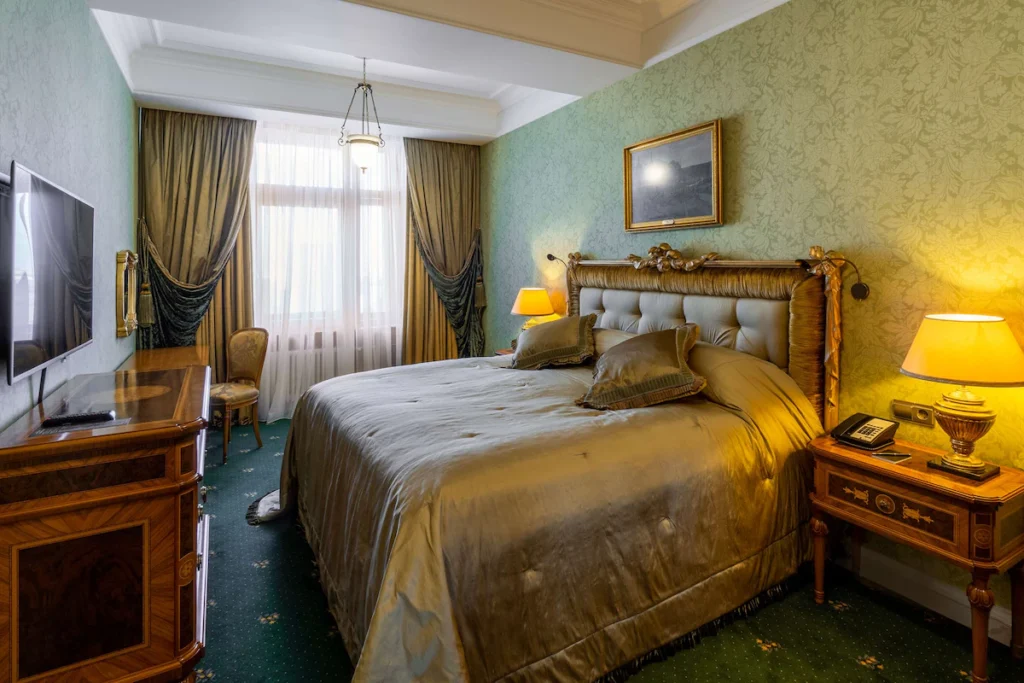 ملاذ فاخر مصمم خصيصًا للأزواج الباحثين عن أجواء حالمة وتجربة إقامة لا تُنسى. يتوسط الجناح سرير بأعمدة أربعة بحجم كبير يضفي لمسة كلاسيكية أنيقة، وتحيط به إضاءة دافئة تخلق أجواءً رومانسية ساحرة. كما تكشف النوافذ الواسعة عن إطلالات خلابة على نهر موسكو والبيت الأبيض في موسكو، لتمنح اللحظات طابعًا استثنائيًا.