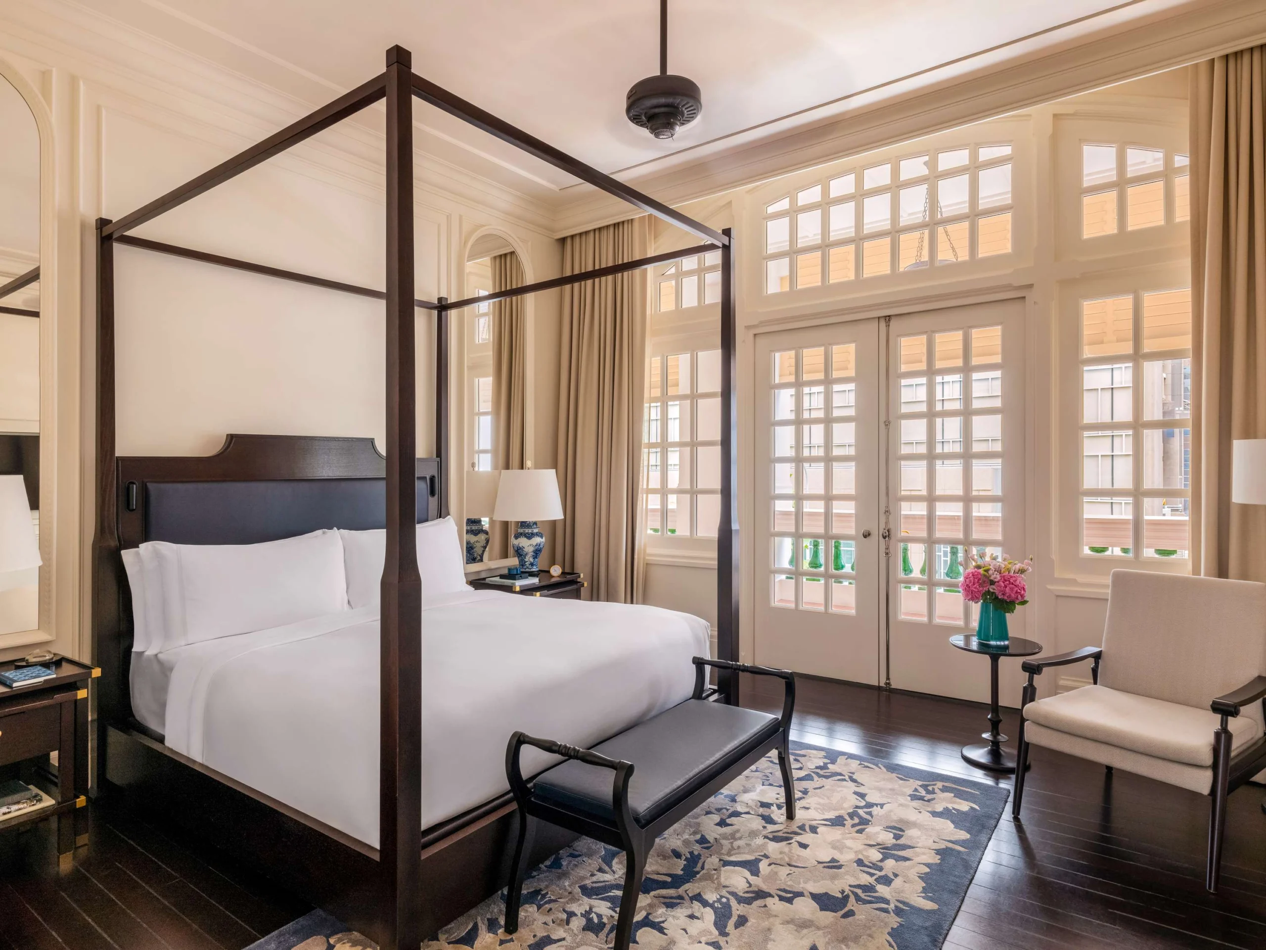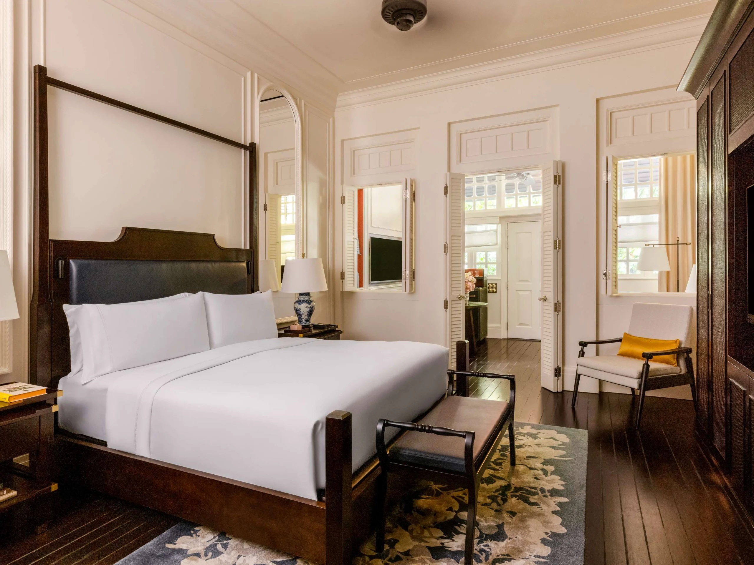 وسط العمارة الاستعمارية المهيبة والأسقف الأصلية التي يبلغ ارتفاعها 14 قدمًا، يجتمع الجمال الكلاسيكي مع الفخامة الحديثة. يمكن لزوار الفندق الإقامة في استوديوهات رومانسية تُطل على الحدائق أو اختيار الأجنحة الرئاسية الفسيحة المصممة ببراعة، والمزينة بالتحف والأرضيات الخشبية والأعمال الفنية النادرة، وكل ذلك بأسلوب رافلز الأيقوني الذي يجسّد الأناقة الخالدة.