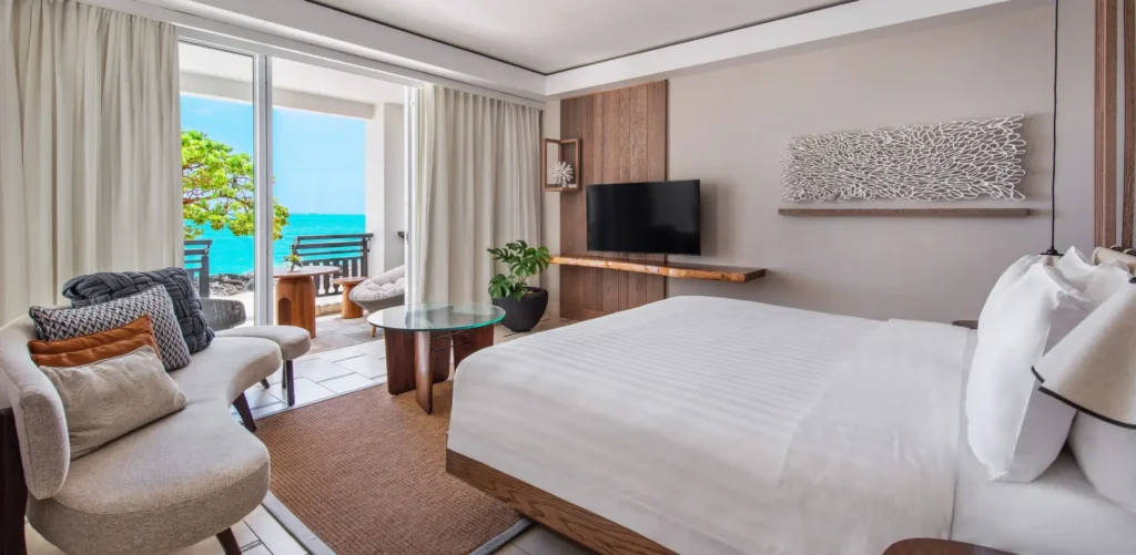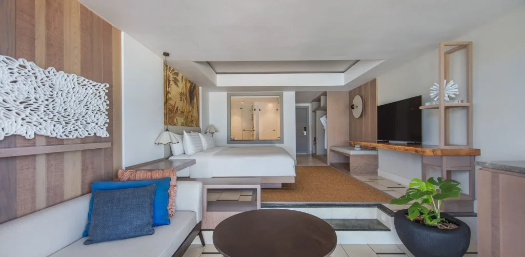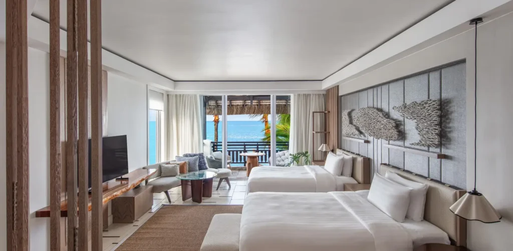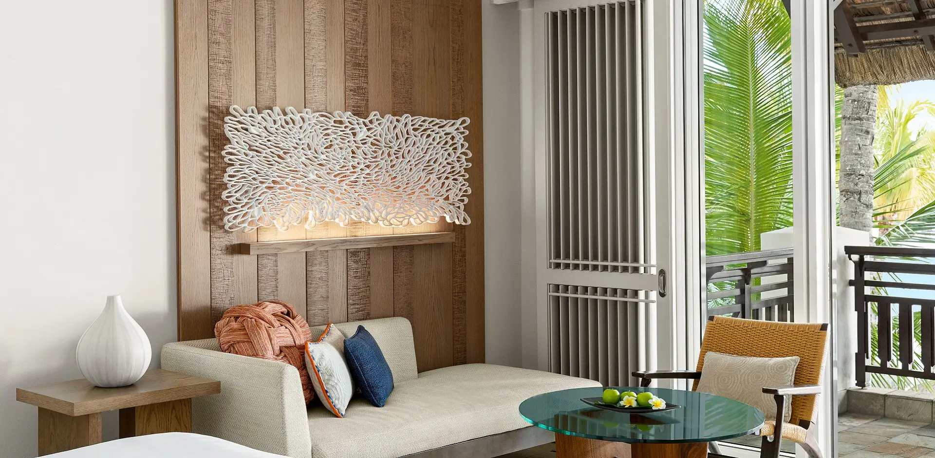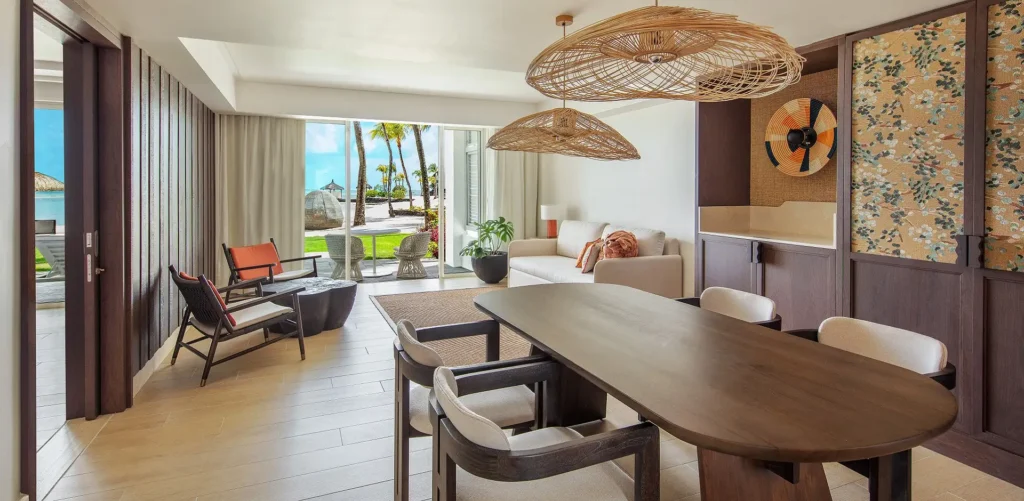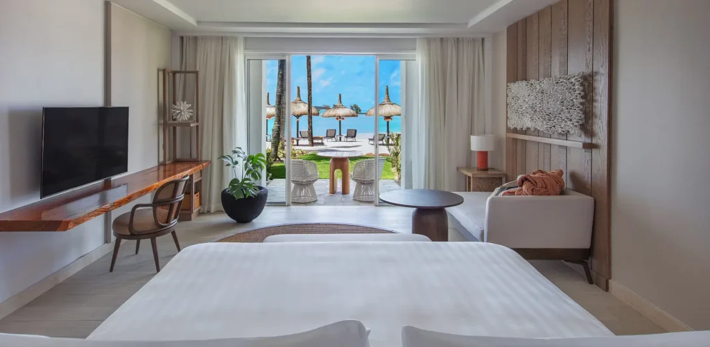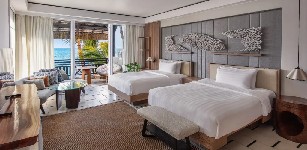 مستوحى من جمال موريشيوس الطبيعي، يتميز بألوان هادئة وصور فوتوغرافية أنيقة وفنون محلية عصرية تضفي لمسة مميزة على الأجواء. يضم جناحين خاصين مفروشين يفتحان مباشرة على الرمال البيضاء، مع مزايا حصرية تشمل مشروبات مجانية من الميني بار وإفطاراً يومياً مميزاً من قائمة انتقائية.