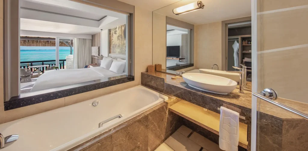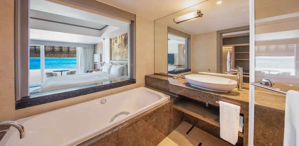 يمنح إطلالات خلابة على المحيط من شرفة خاصة، مع الاستمتاع بمزايا حصرية تضيف لمسة من الفخامة إلى الإقامة. يقع في جزيرة صغيرة تتميز بشاطئ منعزل ومسبح مخصص للبالغين فقط، ليقدم تجربة منتجع متكاملة تعكس أرقى أساليب الاستجمام.