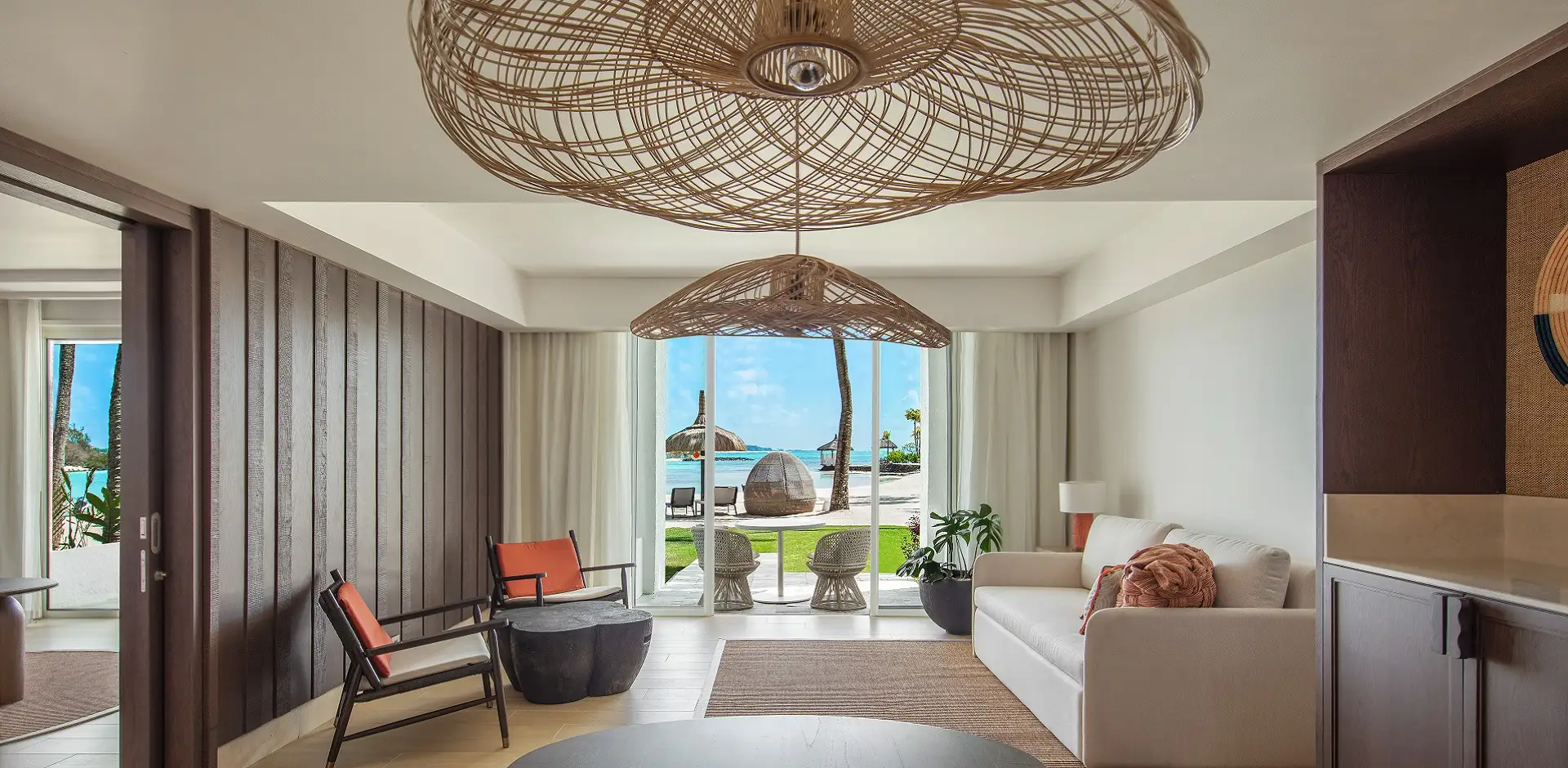يقع في جزيرة منعزلة ويوفر إطلالات بحرية رائعة من شرفتين خاصتين مفروشتين. يتميز بجناح واسع بغرفة نوم واحدة مع غرفة معيشة وطعام منفصلة، تزدان بقطع فنية وإكسسوارات مستوحاة من تقنيات النسج الموريشيوسية التقليدية، في مزيج متناغم يجمع بين التصميم الشاطئي العصري والاحتفاء العميق بالتراث الثقافي الغني للجزيرة.