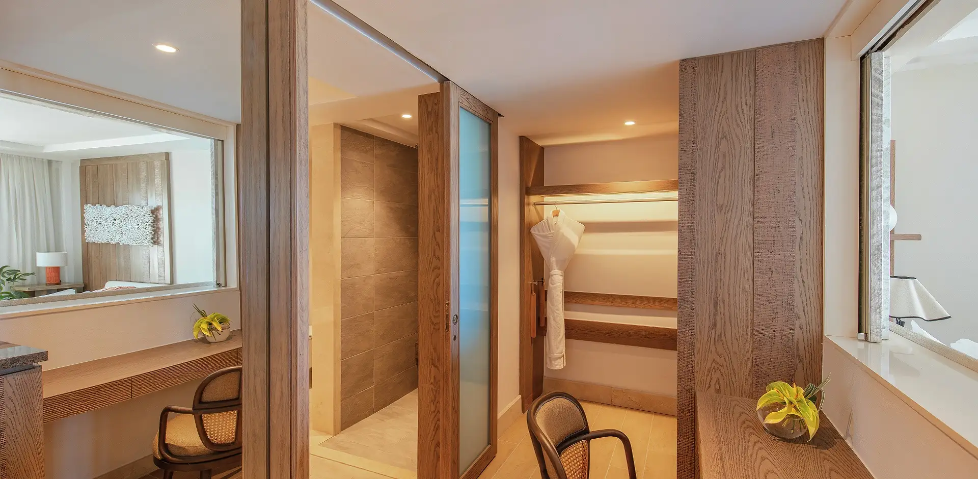 يوفر مساحات واسعة وإطلالات بانورامية على المحيط مع وصول مباشر إلى الشاطئ. يمكن الاسترخاء في غرفة المعيشة وتناول الطعام الهادئة، والتي يمكن تحويلها إلى غرفة نوم إضافية عند السفر مع الأطفال. وبفضل موقعه القريب من المسبح الرئيسي و نادي الأطفال في المنتجع، يجمع هذا الجناح بين الراحة وسهولة الوصول إلى مرافق المنتجع.