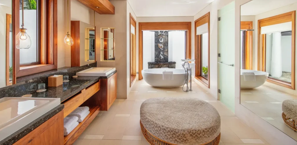 يقع في جزيرة منعزلة ويضم تراساً خاصاً مفروشاً يفتح مباشرة على الشاطئ، مع مزايا حصرية تشمل إفطاراً يومياً من قائمة انتقائية وخدمة تسجيل وصول خاصة داخل الجناح. يوفر أجواءً تعكس روح موريشيوس الفريدة، حيث يلتقي البعد الثقافي بالأناقة الهادئة في تصميم مدروس بعناية.