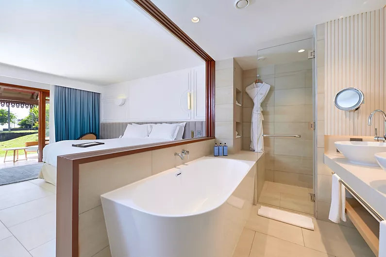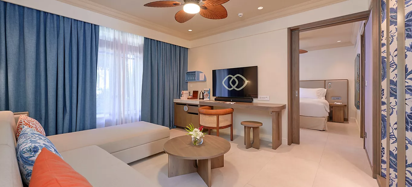 استرخِ على كرسي مريح في شرفة أو تراس غرفتك الفاخرة، بينما تحتسي مشروبك المفضل من الميني بار المخصص لك. أمامك يمتد المحيط المتلألئ حتى الأفق، في مشهد ساحر تؤطره أشجار النخيل والخضرة الاستوائية. داخل الغرفة المصممة بألوان ترابية هادئة، يطل ركن الجلوس المزود بأريكة قابلة للتحويل على هذا المشهد الطبيعي الخلاب. أما الحمام فيمنحك خيار الاسترخاء في حوض استحمام فاخر أو تحت دوش مطري منعش. ولإشباع رغباتك في أي وقت، تتوفر خدمة الغرف على مدار الساعة.