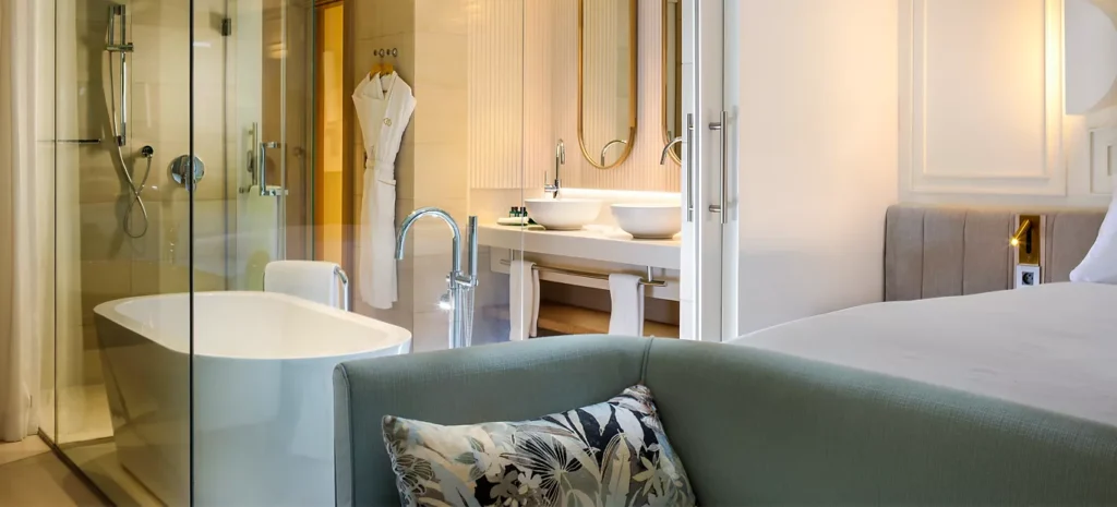 اكتشف روعة الهدوء الساحلي في غرفة ماغنيفيك، حيث تدعوك الشرفة أو التراس الخاص للاستمتاع بنسيم البحر العليل. يتميز التصميم بحمام مفتوح ومساحة مشرقة مليئة بالضوء الطبيعي، ما يخلق أجواء مريحة تدعو للاسترخاء. يمكنك الخروج للاستماع إلى همسات نسيم المحيط، أو الاسترخاء داخل الغرفة بعد يوم حافل على الشاطئ. غرفة ماغنيفيك هي ملاذ مثالي يجمع بين الراحة وإيقاع الحياة الساحلية.
