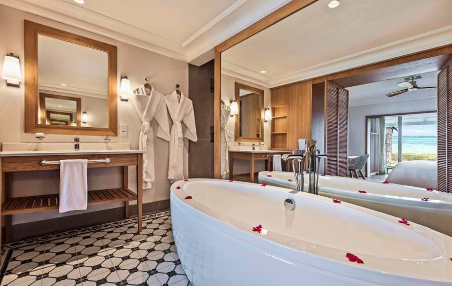 تخيّل نفسك أمام بركتي سباحة، وسبعة مطاعم وبارات، وصالة شاي أنيقة، ومركز للياقة البدنية، وسبا فاخر بخدمات متكاملة، وأفضل حياة ليلية في موريشيوس – وكلها تطل على شاطئ أبيض ناعم لا ينتهي أفقه.