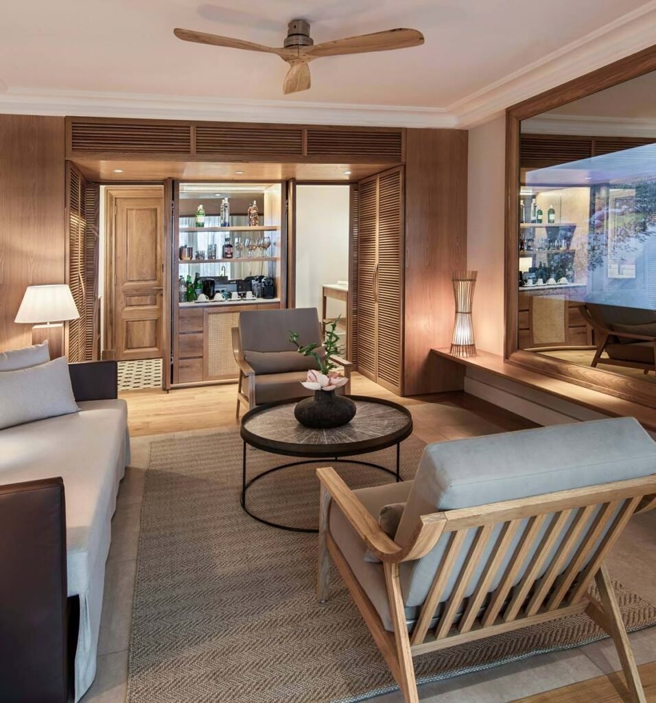 لمن يبحثون عن مزيد من الرحابة والراحة، يستوعب هذا الجناح شخصين بالغين، ويضم سريرًا بحجم كينغ، وغرفة جلوس منفصلة، إضافة إلى خزانة ملابس واسعة بتصميم ممر. يقع الجناح في الطابق الأرضي من فيلا على الطراز الكريولي، مع تراس خاص يطل على البحر ويوفر وصولًا مباشرًا إلى الشاطئ. ويحتوي الحمام على دش منفصل، ومرحاض مستقل مع بيديه، وحوضي غسيل، بالإضافة إلى حوض استحمام فاخر مستقل.