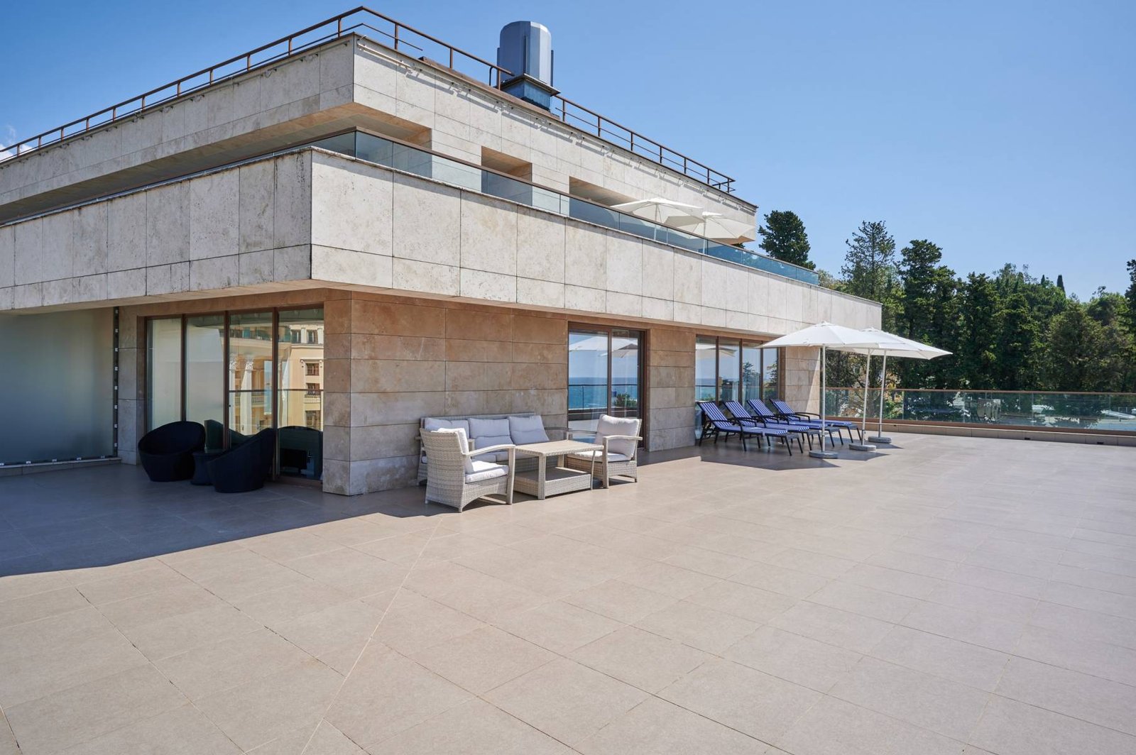 تقع أجنحة التيراس الفاخرة المطلة على البحر في الطوابق العليا من الجناحين الشرقي والغربي، وتمنح ضيوفها إطلالة خلابة على البحر الأسود وغروب الشمس الجنوبي والحديقة المزهرة. استمتع بأشعة الشمس الدافئة في أجواء من الخصوصية على التيراس الفسيح الخاص بك، حيث يلتقي الرفاهية بالهدوء في مشهد لا يُنسى.