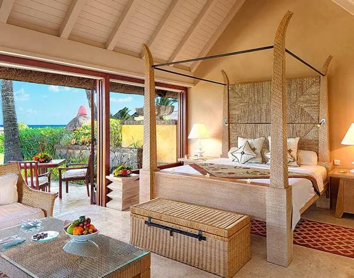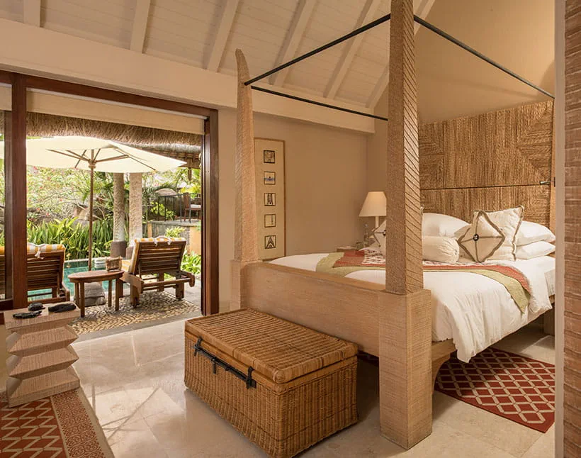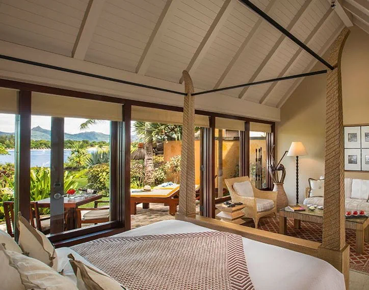 تم تصميم هذه الفيلا المهيبة بعناية باستخدام الضوء الطبيعي والمواد المستوحاة من الطبيعة. تمتاز بأسقف عالية مغطاة بالقش التقليدي، وأقمشة يدوية الصنع، وأثاث خشبي أنيق يضفي لمسة أصيلة على الأجواء. توفر مساحات رحبة للرفاهية، سواء في غرفة النوم الرئيسية المزودة بسرير كينغ، بمساحة داخلية تبلغ 85 مترًا مربعًا مع إطلالات خلابة على المحيط والجبال، أو في الحمام الرخامي الغائر المطل على فناء خاص، أو في غرفة المعيشة المستقلة المريحة. كما تضم جناحًا مخصصًا لتناول الطعام في الهواء الطلق، ومسبحًا خاصًا، وتراسًا مجهزًا بكراسي استرخاء. والفيلا مزينة بقطع فنية محلية تمنح النزلاء تجربة أصيلة تجمع بين الفخامة والروح الموريشيوسية.