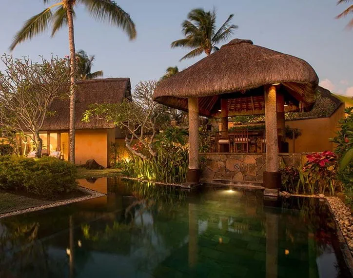 تتميز هذه الفلل ذات الأسقف التقليدية بمساحة داخلية تبلغ 70 مترًا مربعًا، وتضم غرفة نوم بسرير كينغ ومنطقة معيشة أنيقة مجهزة بأثاث مصنوع من القش والخيزران الطبيعي، إضافة إلى حمام مشرق مزود بحوض رخامي غائر. في فناء الحديقة الخاصة، يمكن للنزلاء الاسترخاء في مسبحهم المدفأ، أو التمدد على كراسي الاسترخاء، أو الاستمتاع بإطلالات بحرية خلابة من جناح تناول الطعام المرتفع.
