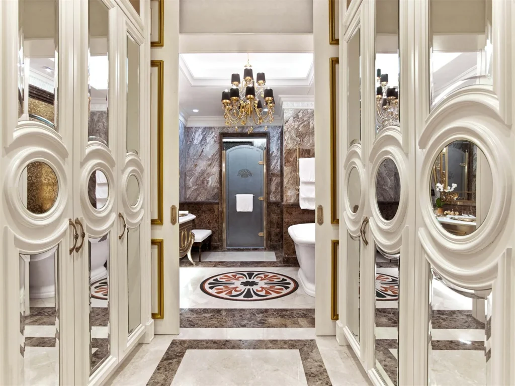 يُعد الجناح الملكي في فندق سانت ريجيس رمزًا للترف والرقي، حيث تُبرز أسقفه العالية التي تصل إلى خمسة أمتار جمال التصميم المعماري وأناقة الغرفة، مما يخلق أجواءً مبهرة ومهيبة. يتكون الجناح من غرفة معيشة واسعة مع منطقة لتناول الطعام، غرفة نوم، ركن للجلوس ومساحة عمل عملية، وقد تم تصميم كل تفصيلة فيه بعناية فائقة لتلبية أعلى معايير الفخامة.