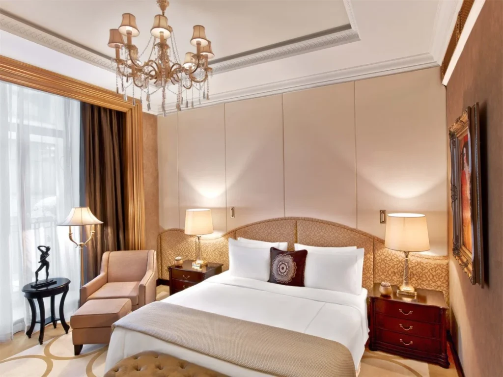تجمع غرفة ديلوكس المزودة بسرير كينغ بين الأناقة والراحة في تجربة إقامة فاخرة ومميزة. يمنح الارتفاع الاستثنائي للأسقف الذي يصل إلى ثلاثة أمتار، وفي بعض الغرف إلى خمسة أمتار، مع النوافذ الكبيرة، الغرفة طابعًا فريدًا من الرحابة والجمال، مما يخلق تناغمًا رائعًا بين المساحة والتصميم.